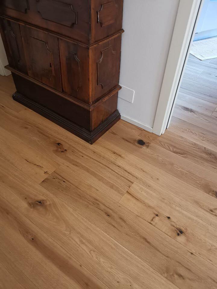 Parquet in rovere prefinito 14/15x190x1900, verniciato UV, scelta abc a 46,80 euro/mq più IVA.